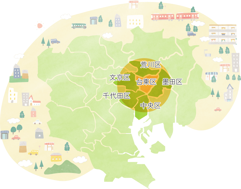 東京都台東区エリアを中心に、近隣の荒川区・墨田区・中央区・千代田区・文京区にも対応いたします。